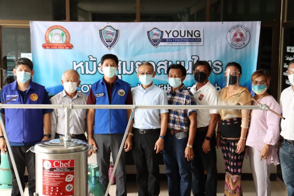 หอการค้าจังหวัดกาญจนบุรี ร่วมกับ YEC หอการค้าจังหวัดกาญจนบุรี สมาคมการค้าอาหารจังหวัดกาญจนบุรี สภาอุตสาหกรรมจังหวัดกาญจนบุรี สภาเกษตรกรจังหวัดกาญจนบุรี จัดทำเครื่องอบสมุนไพรไทย เพื่อสูดดมป้องกันโควิด19 เป้าหมายมอบให้กับโรงพยาบาลสนามที่รักษาผู้ป่วยโควิด19 ในจังหวัดกาญจนบุรี ในเบื้องต้นได้มอบให้กับ นายจิตร ว่องประเสริฐ นายกเทศบาลตำบลท่าขนุนแล้วจำนวน 2 เครื่อง และกำลังผลิตเพิ่มเพื่อมอบให้โรงพยาบาลสนามอื่นๆ ตามเป้าหมาย